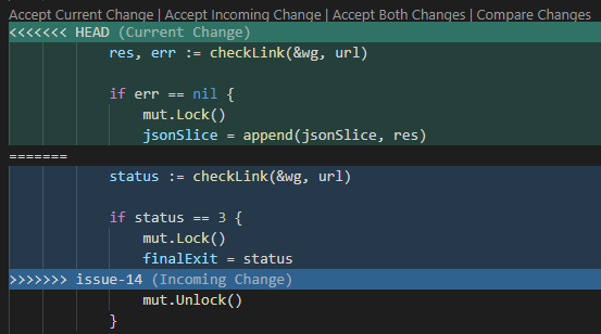 So I decided to add JSON outputs and custom exit codes to my link checking tool WISA, both of these features were to be added separately to the master on different branches, in my case issue-13 and issue-14. So I got to work incorporating the new features.